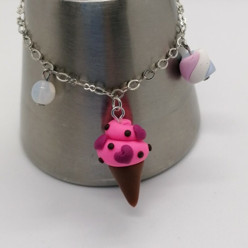 Bracelet with chain fuchsia ice cream cone
