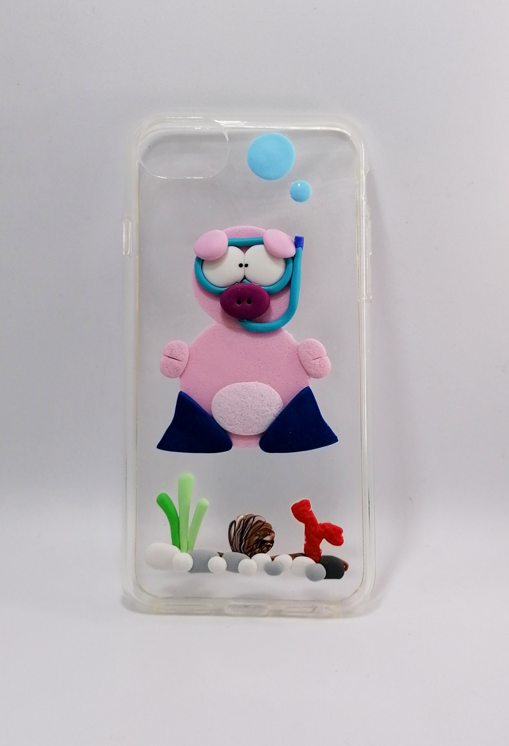 Transparent silicon phone case decorated with hand sculpted clay ladybug and flowers. Fits iphone 6/6s/7/8