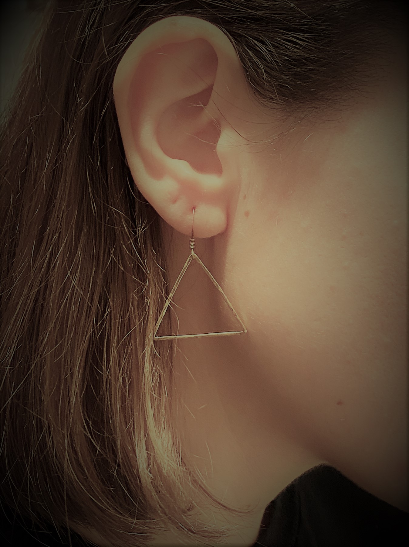 Χειροποίητα κρεμαστά σκουλαρίκια ορειχάλκινα τρίγωνα, σφυρηλατημένα στο χέρι. Εάν προτιμάτε ασημένια γαντζάκια, υπάρχει έξτρα χρέωση 3ευρώ.
