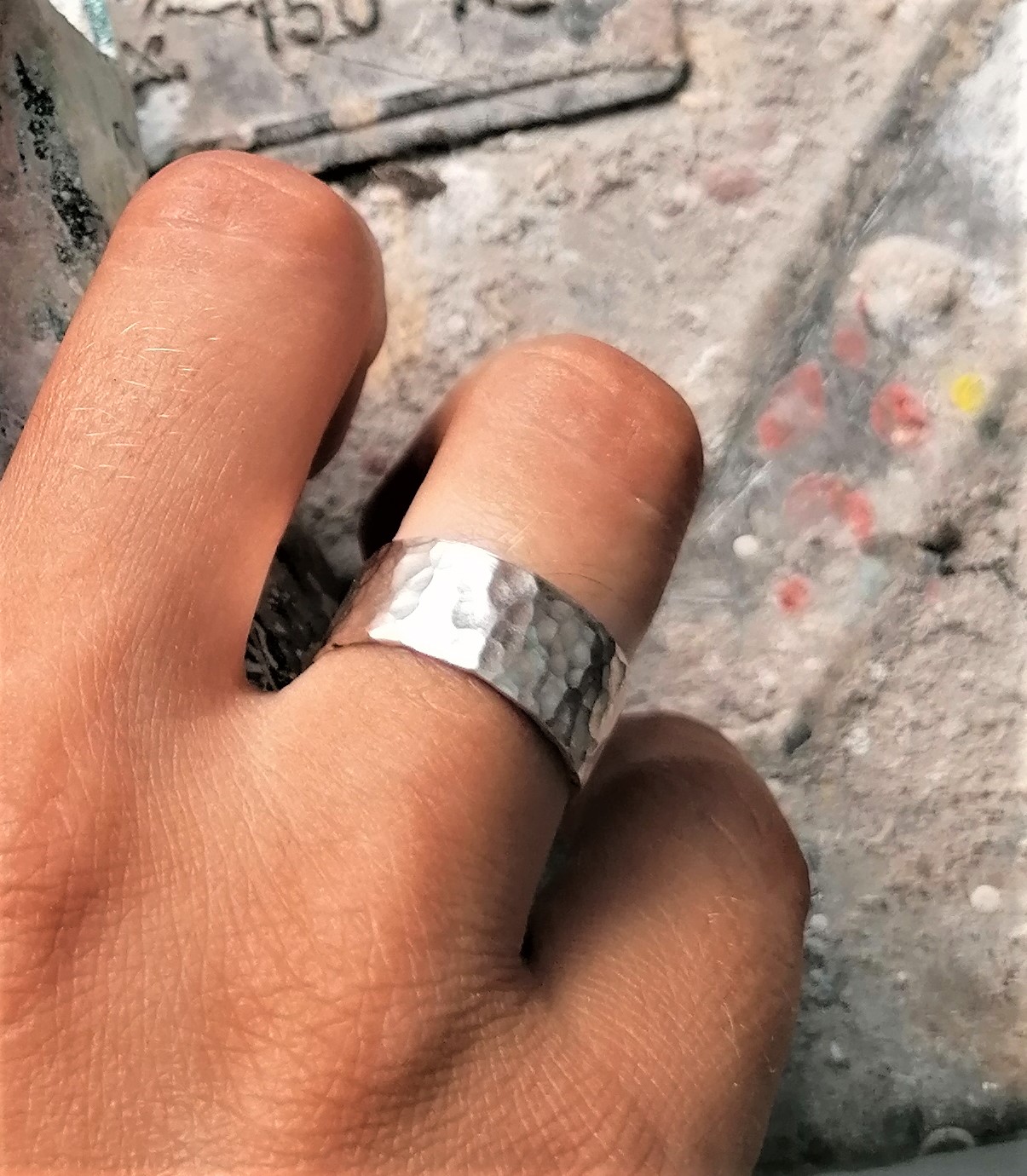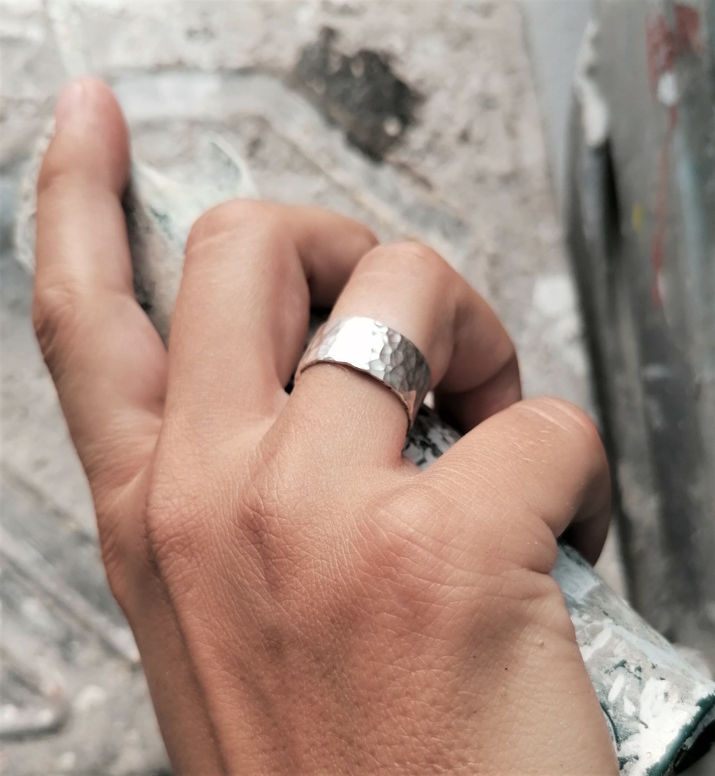 Χειροποίητο δαχτυλίδι απο ασήμι 925.  Μπάρα πλάτους 1 εκ. σφυρηλατημένη στο χέρι.