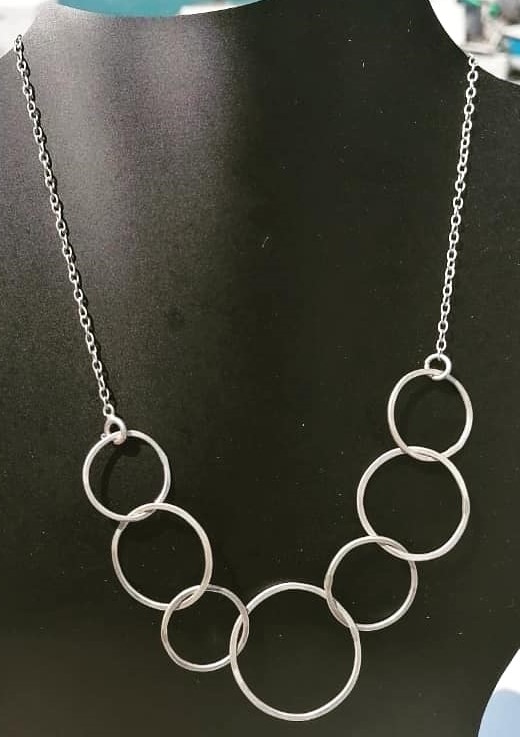 Χειροποίητο ασημένιο 925 κολιέ με επτά ανόμοιους κύκλους και ασημένια αλυσίδα.