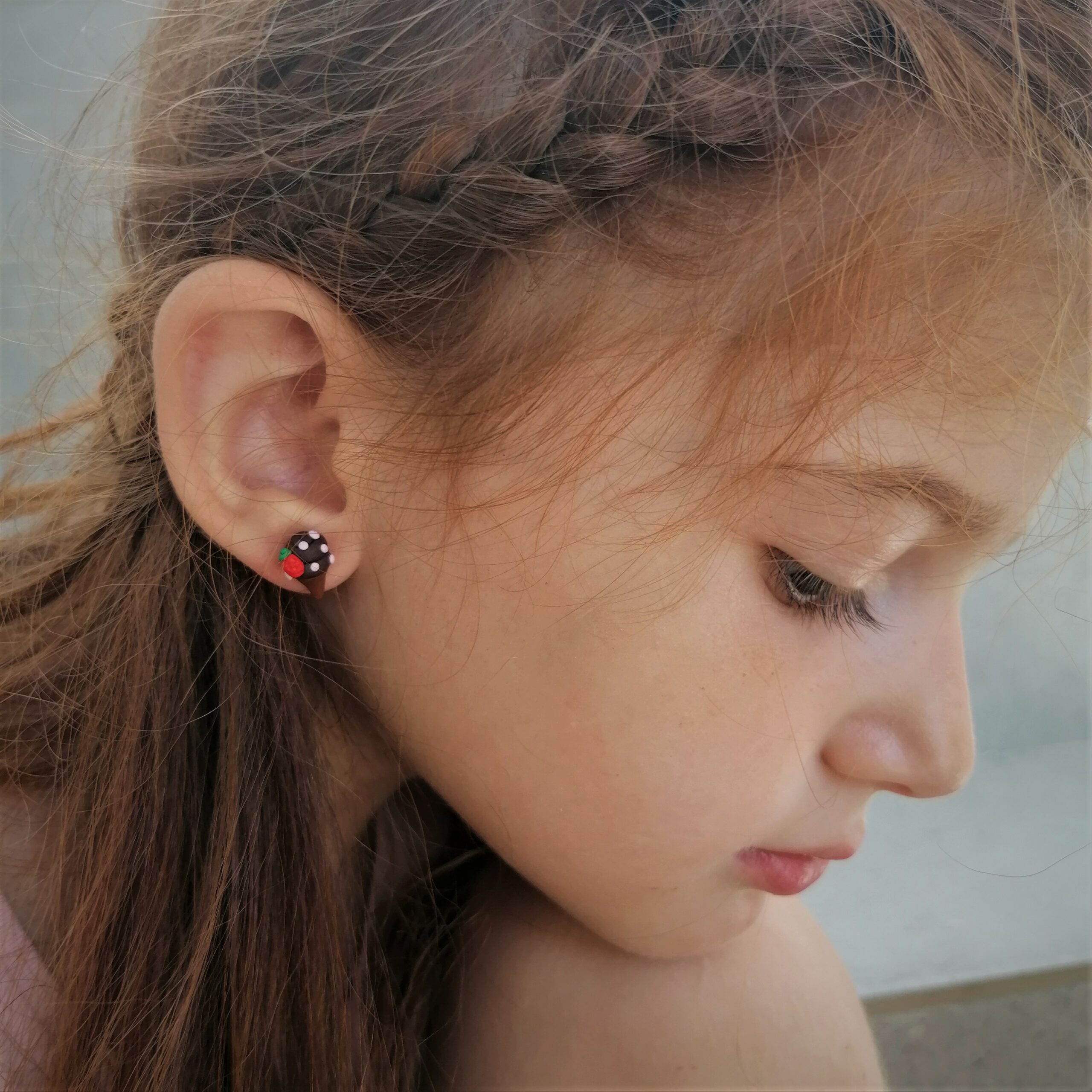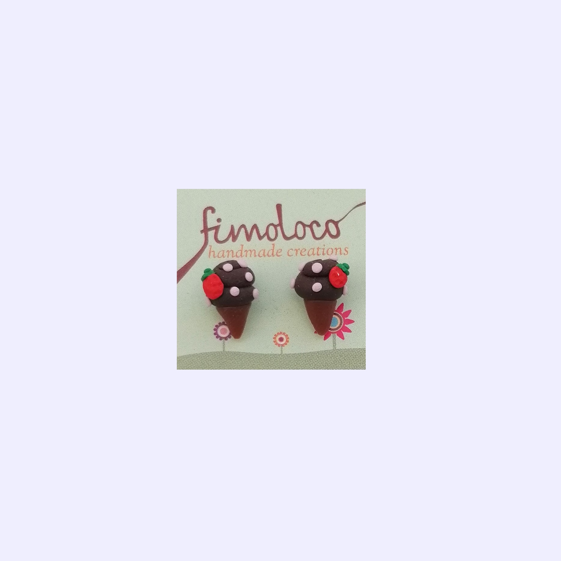 Χειροποίητα σκουλαρίκια λοβού απο πολυμερικό πηλό, παγωτό χωνάκι σοκολάτα με φραουλίτσα.