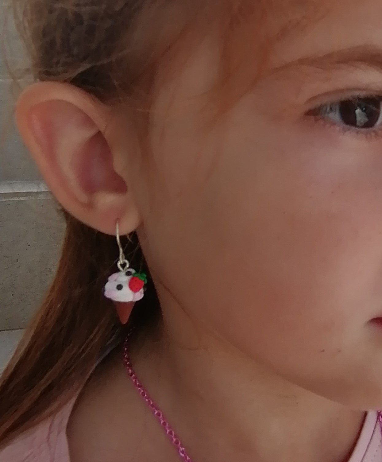 Σκουλαρίκια κρεμαστά παγωτό χωνάκι βανίλια με φραουλίτσα