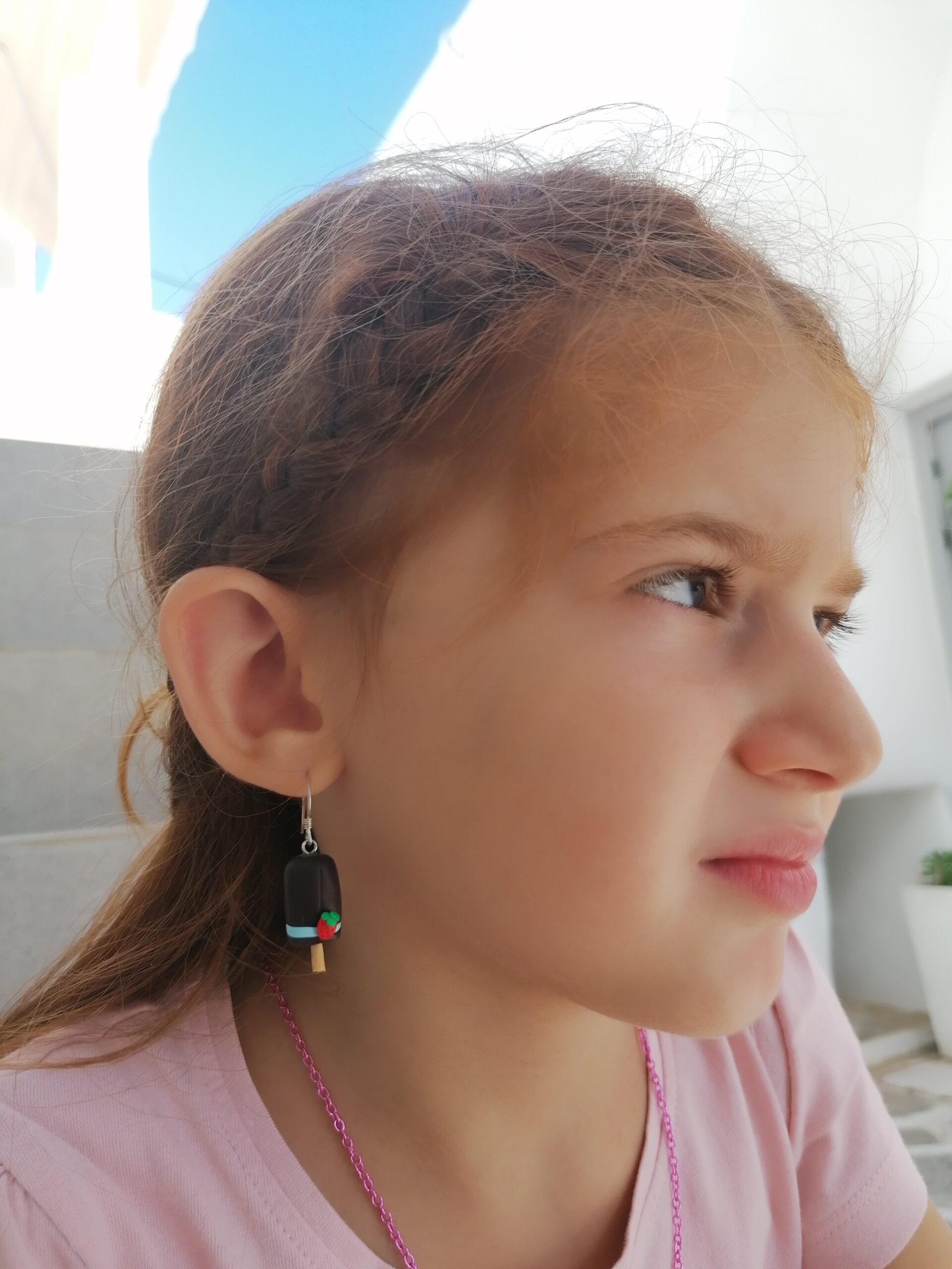 Σκουλαρίκια κρεμαστά παγωτό ξυλάκι σοκολάτα φραουλίτσα