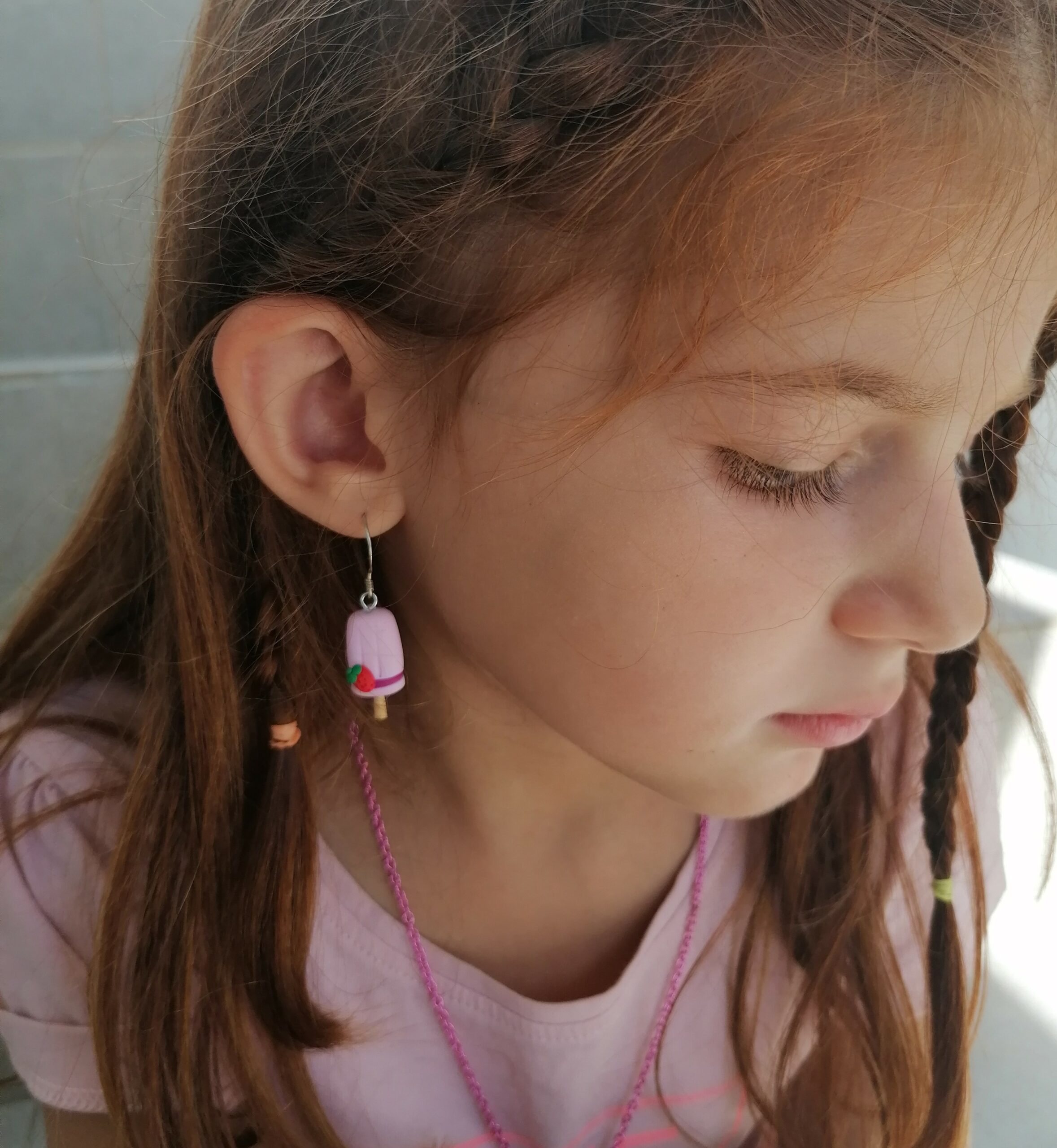 Σκουλαρίκια κρεμαστά ροζ παγωτό ξυλάκι φραουλίτσα