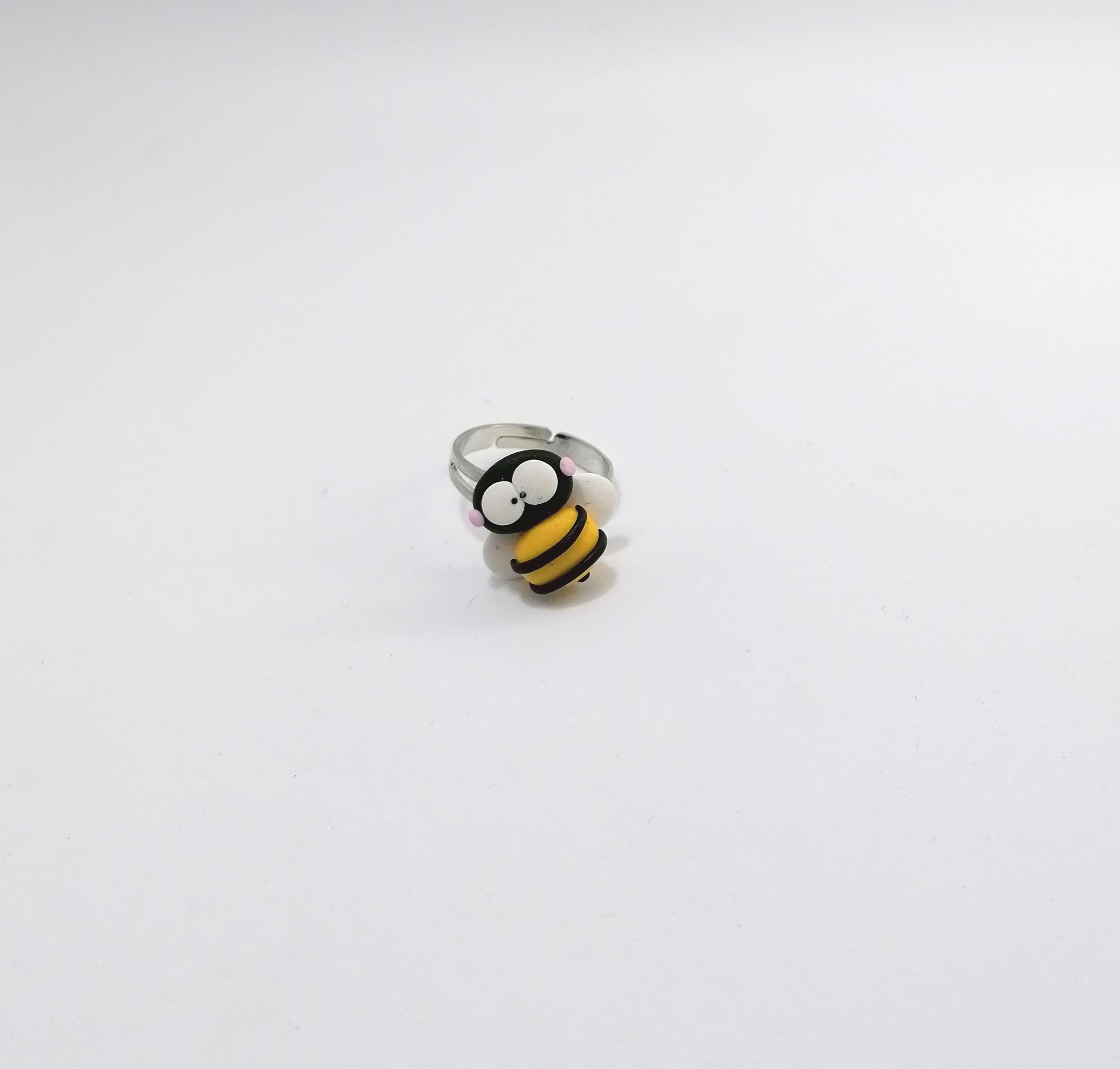 Ρυθμιζόμενο δαχτυλίδι με χειροποίητη μινιατούρα απο πολυμερικό πηλό, μέλισσα.