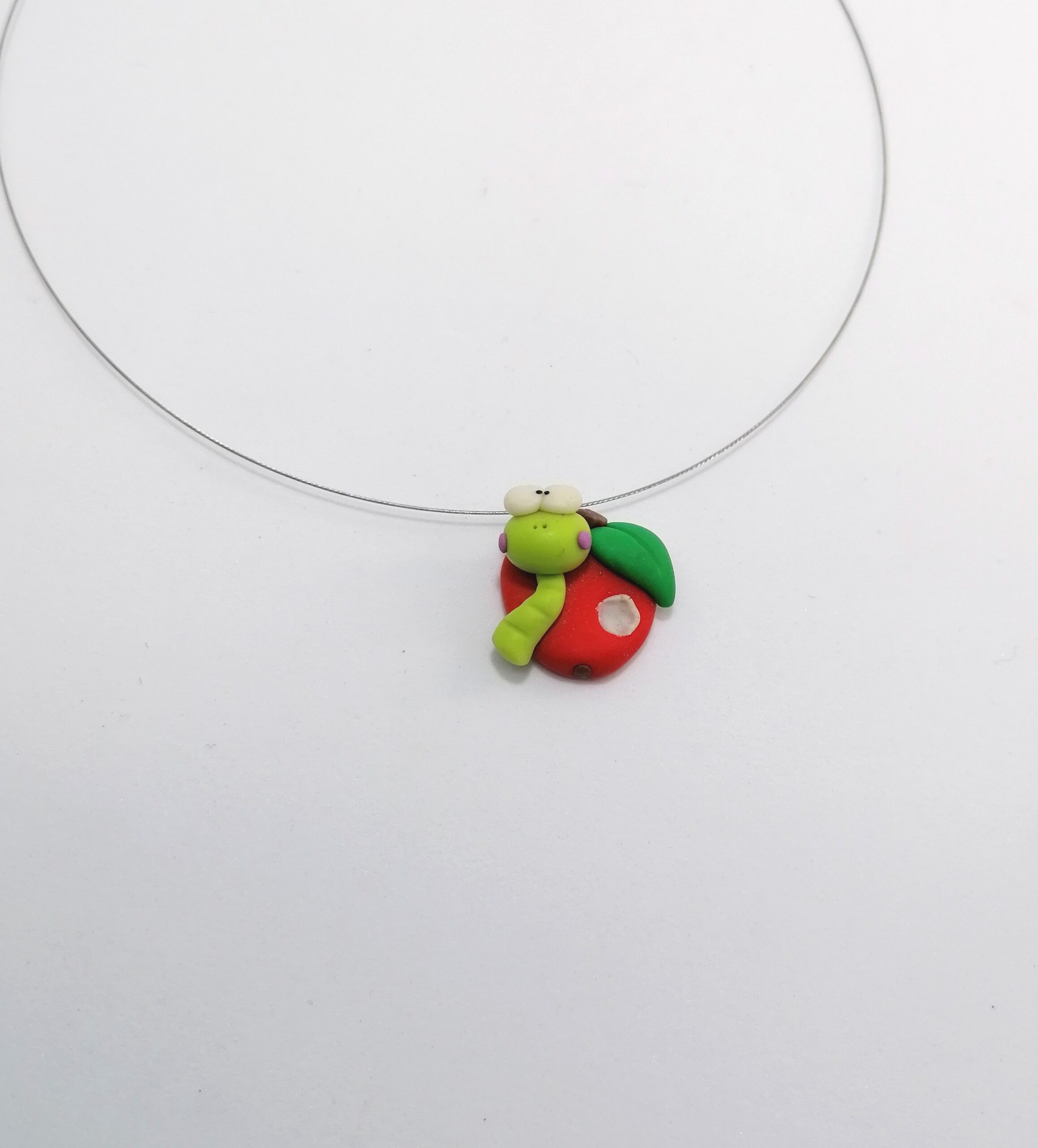 Κολιέ με χειροποίητη μινιατούρα απο πολυμερικό πηλο, μήλο με σκουλίκι. Επιλέξτε παρακάτω αν η μινιατούρα σας θα κρέμεται σε ρυθμιζόμενο βαμβακερό κορδόνι ή σε ατσαλόσυρμα 36cm.