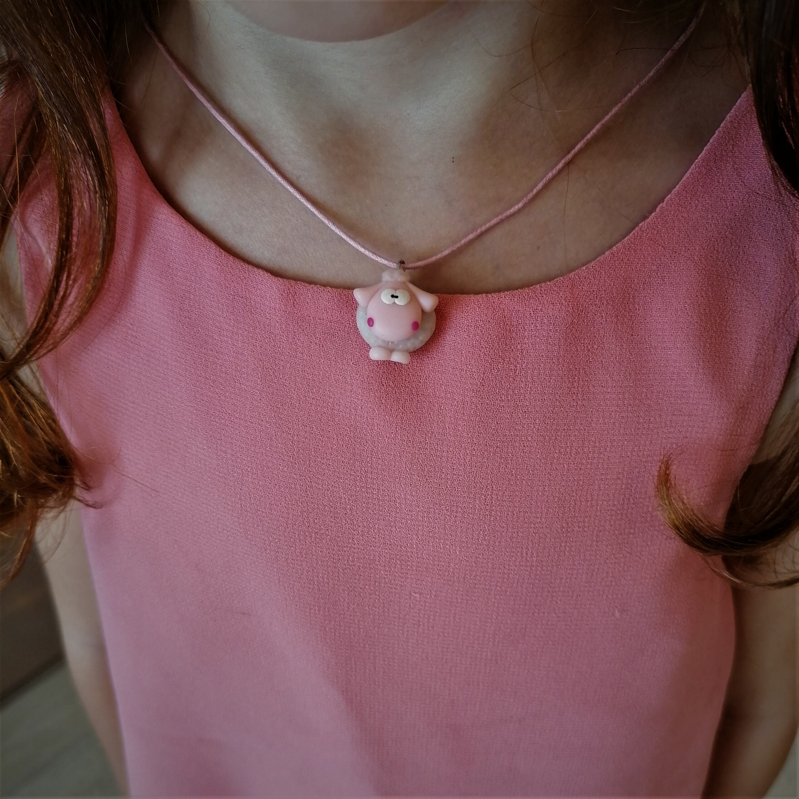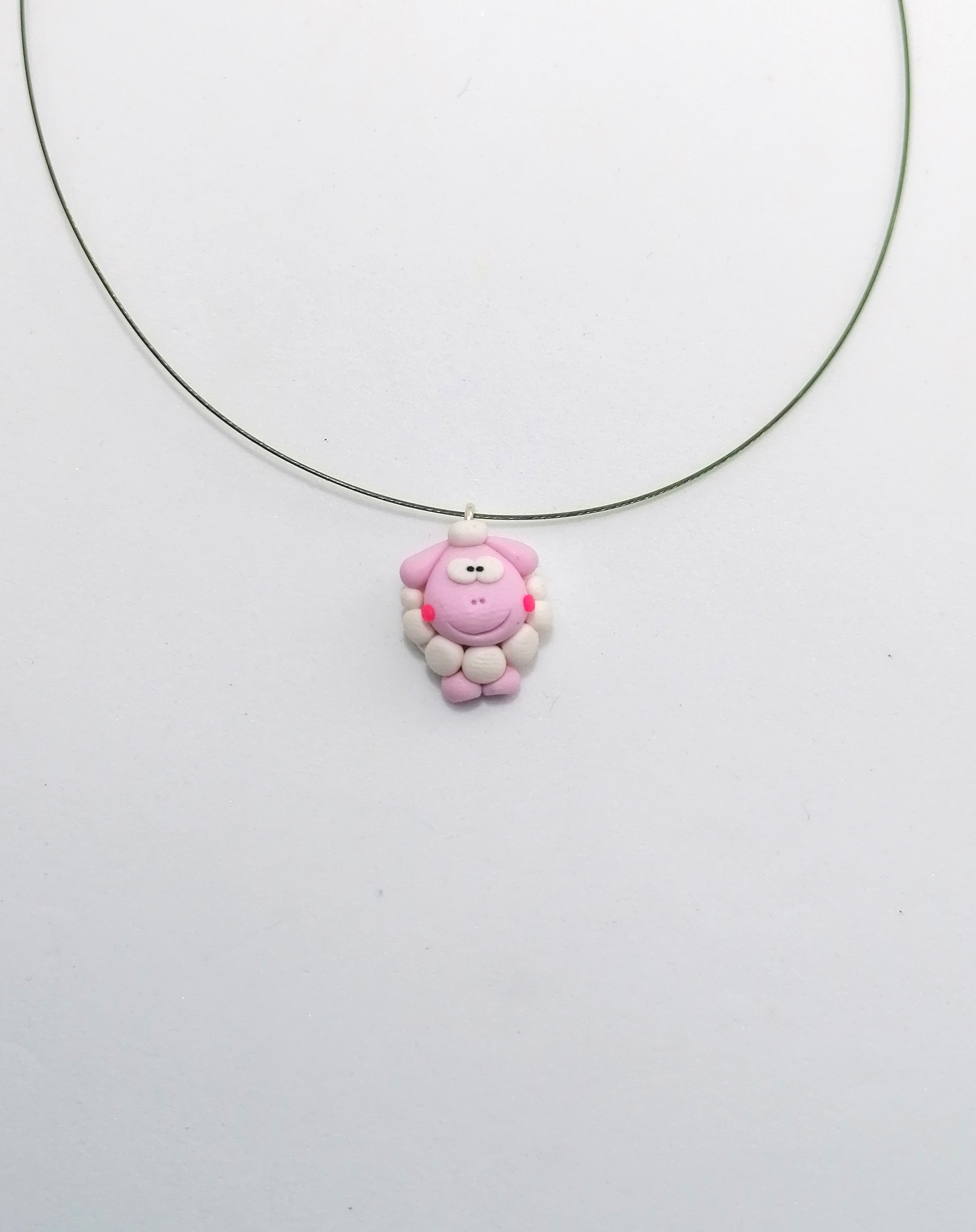Κολιέ με χειροποίητη μινιατούρα απο πολυμερικό πηλο, άσπρο χαμογελαστό πρόβατο. Επιλέξτε παρακάτω αν η μινιατούρα σας θα κρέμεται σε ρυθμιζόμενο βαμβακερό κορδόνι ή σε ατσαλόσυρμα 36cm.