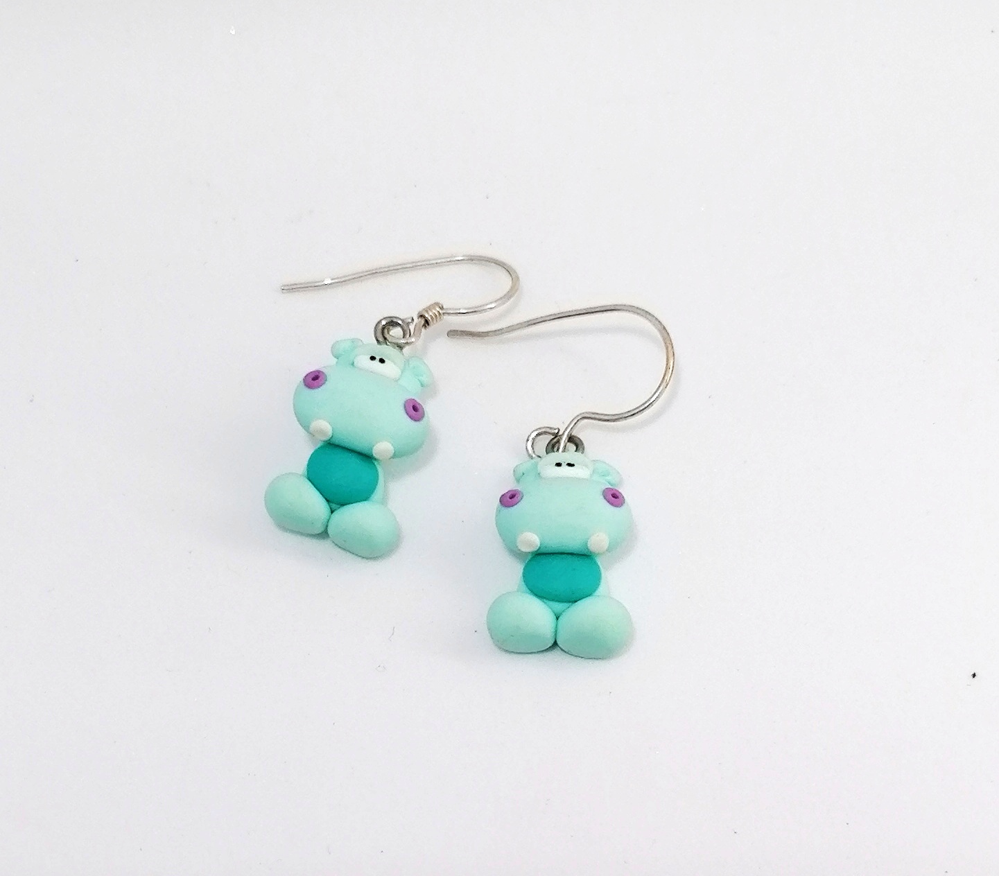 Χειροποίητα κρεμαστά σκουλαρίκια απο πολυμερικό πηλό, γαλάζιοι ιπποπόταμοι. Τα γαντζάκια είναι απο ασήμι 925.