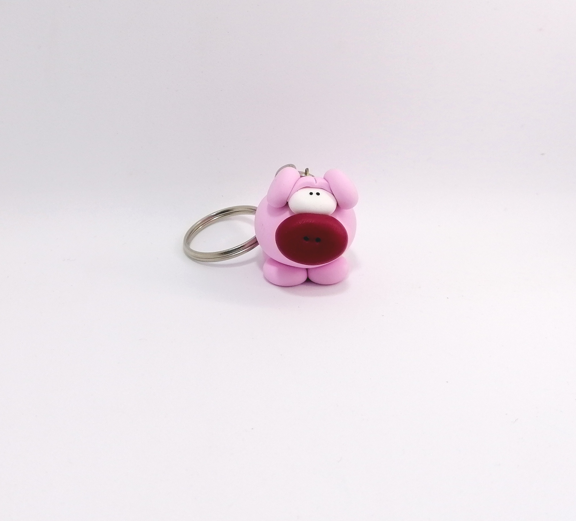 Χειροποίητο μπρελόκ απο πολυμερικό πηλό, ροζ γουρουνάκι με φούξια μουσούδα.