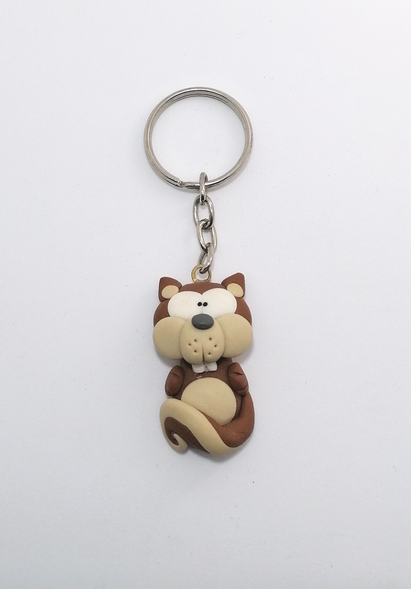 Χειροποίητο μπρελόκ απο πολυμερικό πηλό, καφετί σκίουρος.